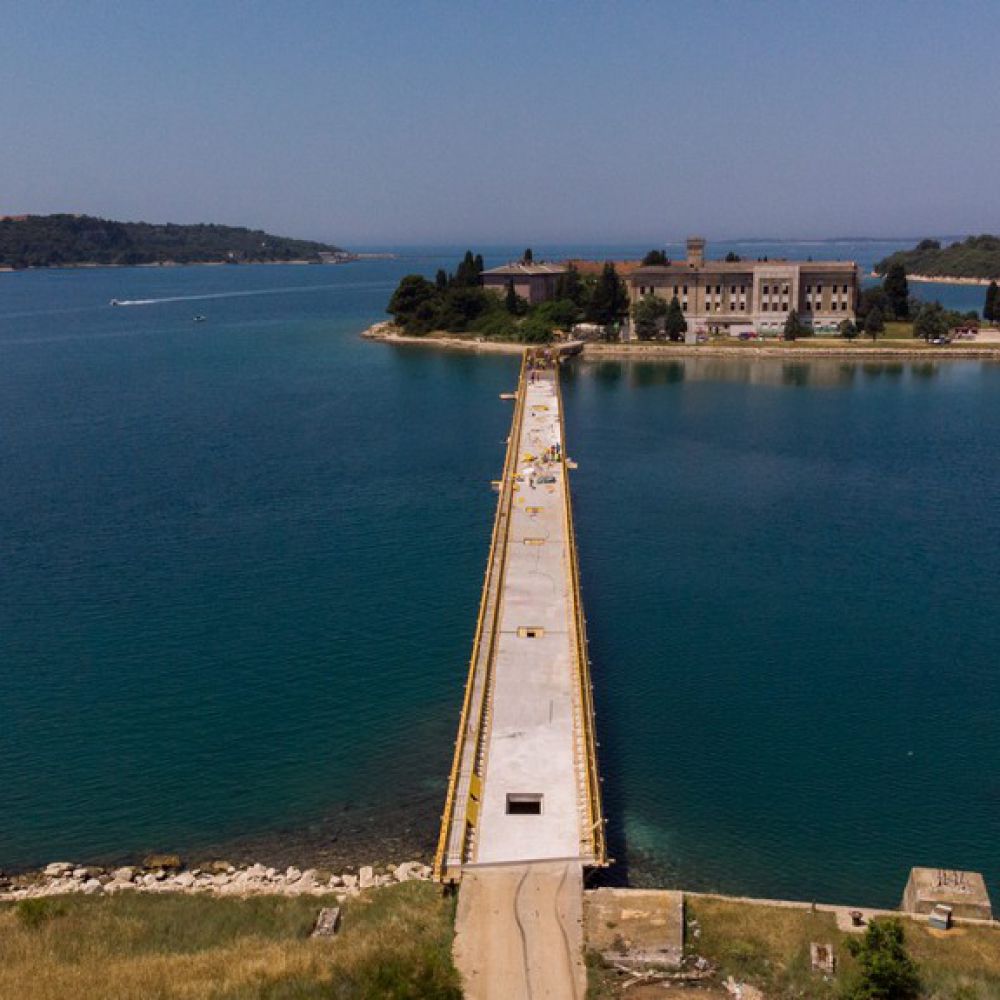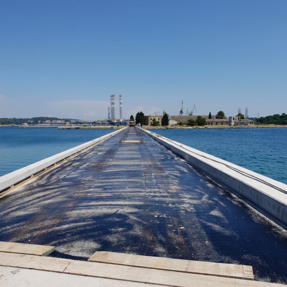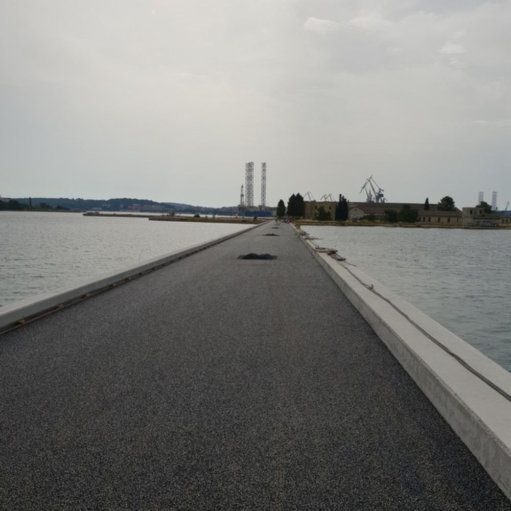 Most koji povezuje poluotok Monumenti i otok Sv. Katarina dugačak je 233,95 m, a sastoji se od dvadeset i jednog raspona dužine od 6,95 m do 8,10 m, ukupne širine 4,5 m. Sama rekonstrukcija mosta sastojala se od izrade novih pilota promjera 50 cm i skrivene nove horizontalne armiranobetonske konstrukcije unutar gabarita postojećeg mosta uz kompletno učvršćenje izvorne armiranobetonske konstrukcije. Izvedena je i nova kolnička ploča širine 6 m, koju čini kolnik širine 5 m te zaštitni rubnjaci s obje strane mosta. Pri izvođenju radova sam pristup izvedbi bio je otežan iz jednostavnog razloga što se objekt nalazi neposredno iznad mora, a većina radova sanacije morala se izvoditi s pontona.