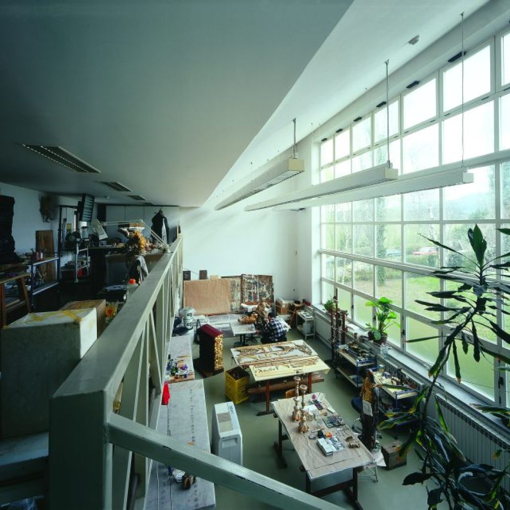 Zbog specifičnih zahtjeva i namjene prostora, postojeća je zgrada rekonstruirana, dograđena i prilagođena svrsi. Prostori su otvoreni dnevnom svjetlu velikim staklenim stijenama, a atelijeri s visokim stropovima podijeljeni metalnim galerijama.