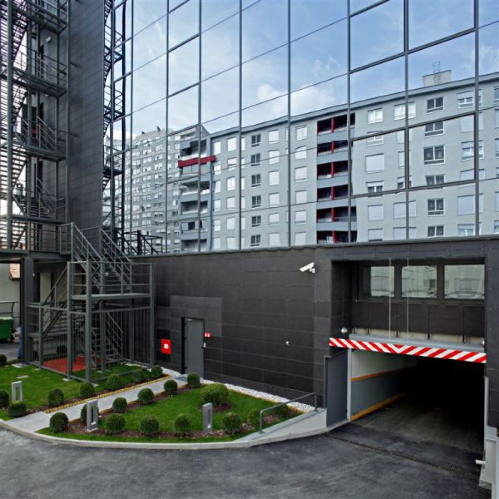 Objekt ima dvije podzemne etaže s garažama i autodizalom, prizemljem i šest katova, a izvana je ukrašen jedinstvenom spider ostakljenom fasadom.