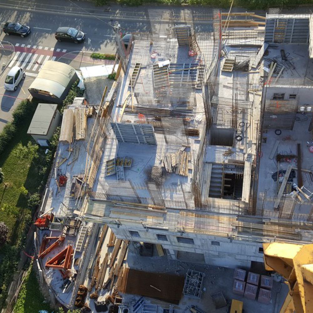 The building is free-standing, oriented on four sides, and consists of two underground floors, a ground floor and eight above-ground floors. On the underground floors, there is a sufficient number of parking spaces for each of the 53 apartments located from the first to the eighth floor, while on the ground floor there is an office space. There are two staircases and two elevators in the building for faster and easier communication of the tenants.