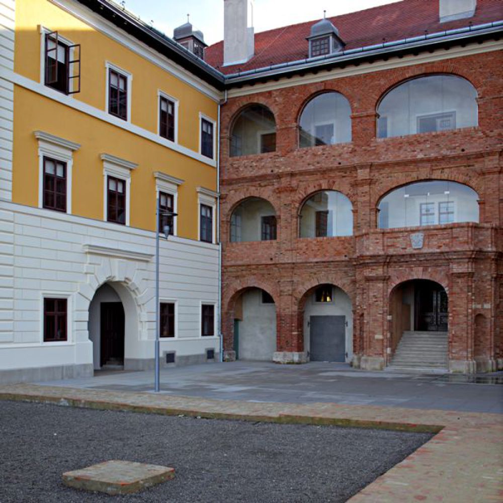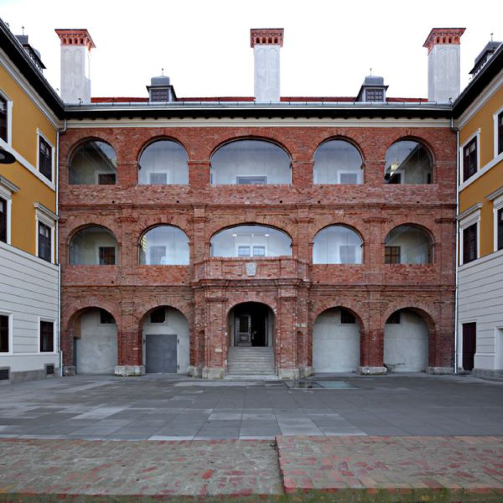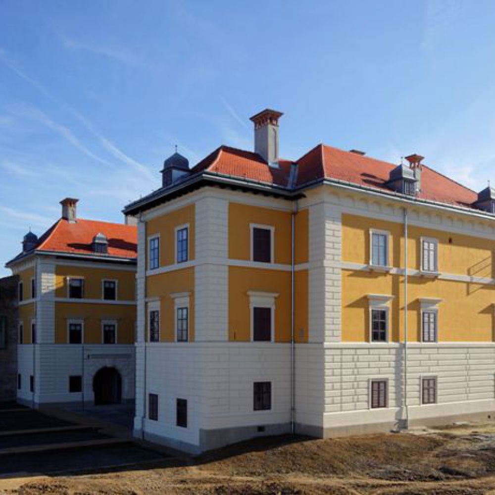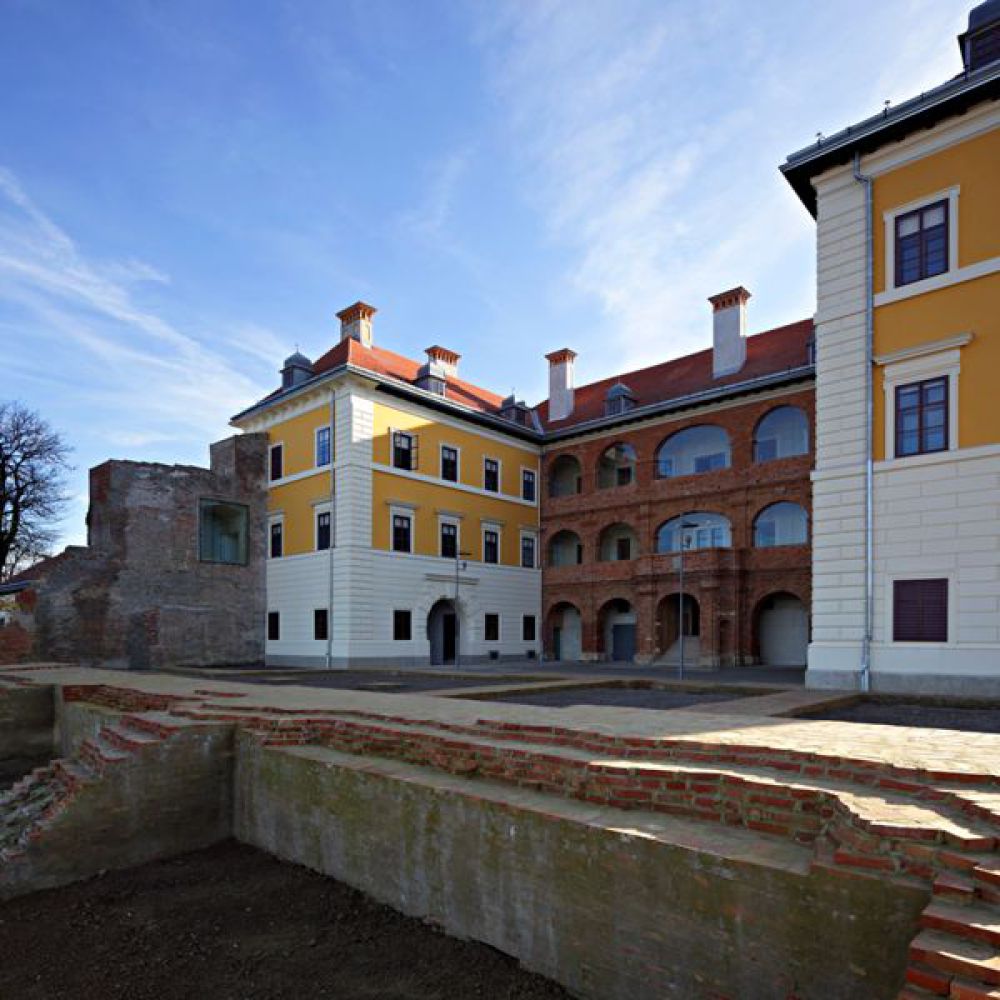 The Palace of Nikola Iločki was built in the transitional Gothic-Renaissance style as a two-story fortified city citadel of a square monastic floor plan with an inner courtyard, auxiliary rooms, a representative knight's hall with vaults, an emporium and King Nikola's living quarters. During the Turkish rule, the palace was destroyed and neglected, at the end of the 17th century, the northern wing and all the rooms inside the fort were demolished. At the beginning of the 18th century, the Odescalchi princes began to rebuild the castle: the square floor plan was changed, the castle was baroqueized, and an arcaded portico built with brick, which is typical of Roman architectural culture, was added to the courtyard facade of the south wing on all three floors.