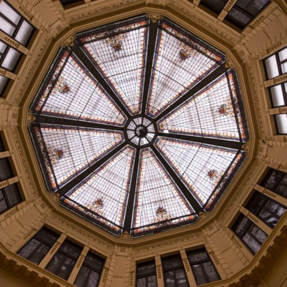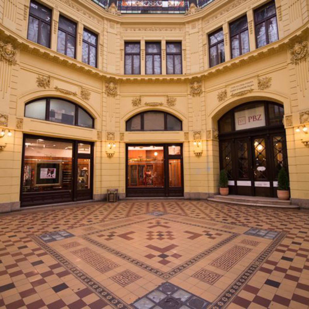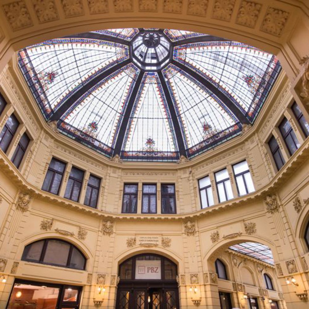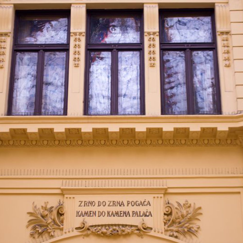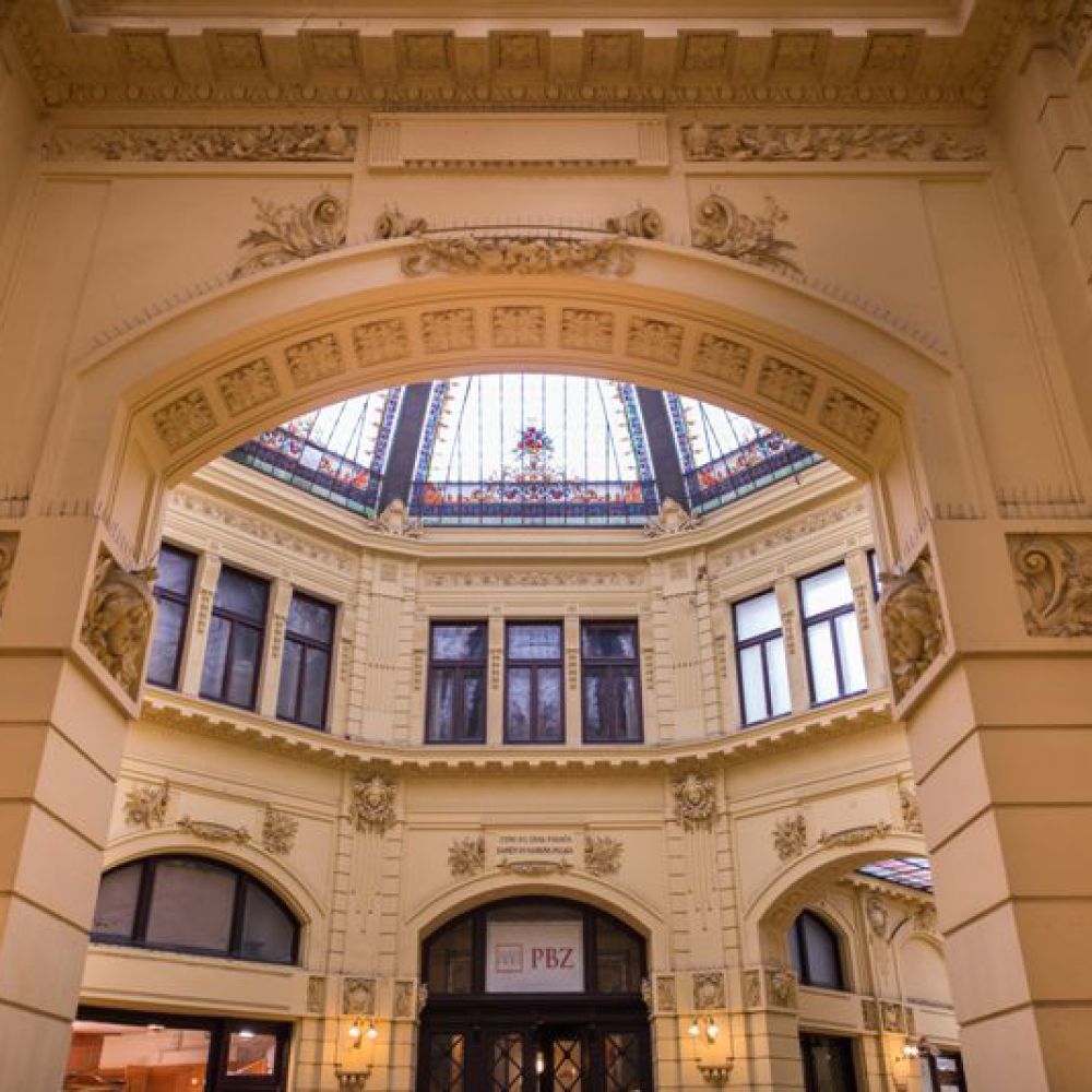 The first Croatian savings bank1898 – 1900. she had the palace of the First Croatian Savings Bank built. The builder was Josip pl. Vancaš, who was also in charge of construction supervision, and the construction was carried out by the company Pilar & Mally & Bauda. The central part of this building has an octagonal shape and is surmounted by a dome, which is an example of the technical achievements of the time visible in the metal grid structure with stained glass windows. This central part is connected by two passages with the neighbouring street and square. The figural reliefs on the attics and the impressive Atlanteans at the entrance are the work of the Reinhold Völkel workshop, and their relief Croatia on the west side under the dome with many allegorical figures is also known, while the author of the stone statues is Dragutin Morak. The facility was built in a very short period of fifteen and a half months. The renovation project of the northern and southern aisles of the palace of the First Croatian Savings Bank Octagon included the protection and restoration of the facade plaster according to the existing profiles, the rehabilitation and restoration of the glass ceilings, the cleaning of the existing ones and the replacement of carpentry elements with fittings.