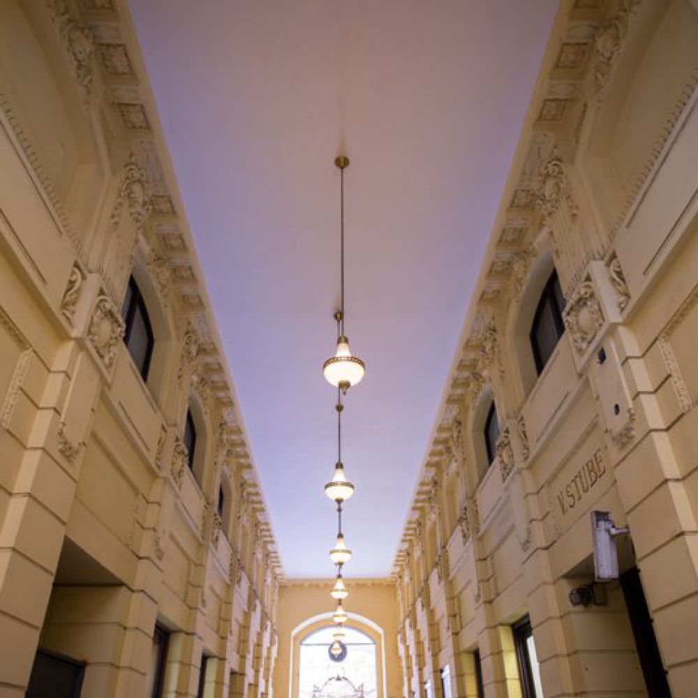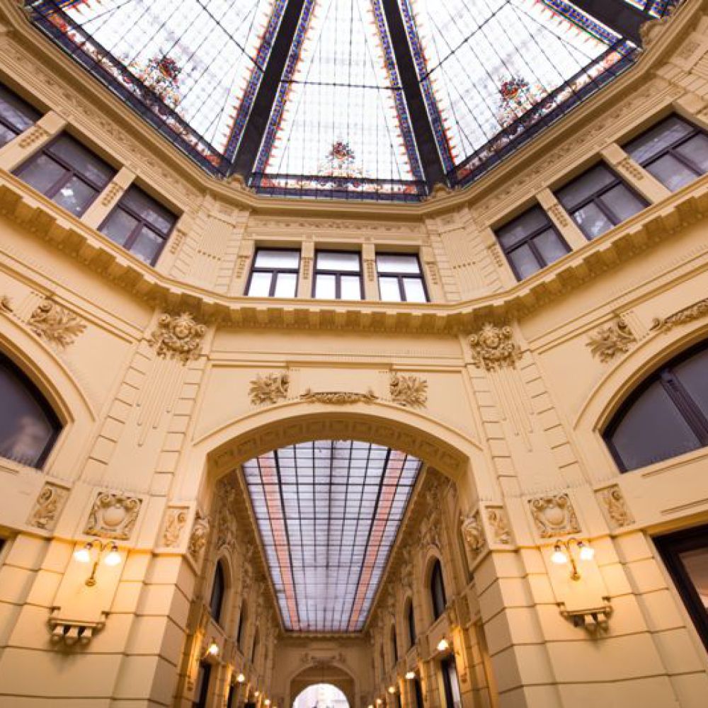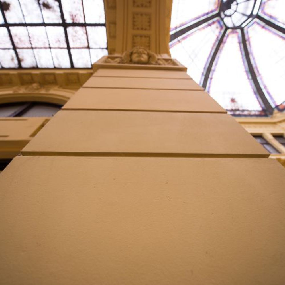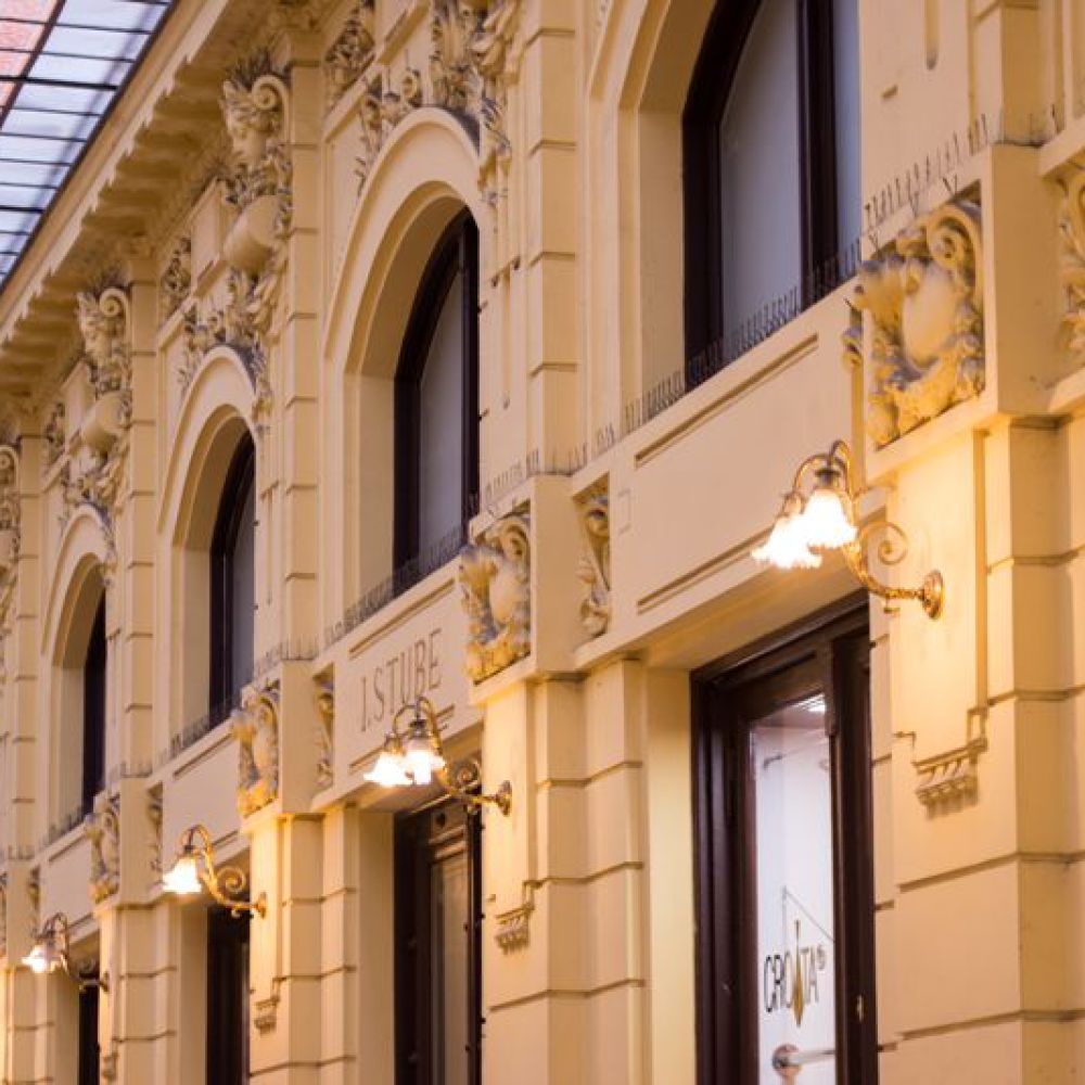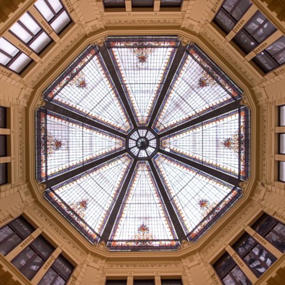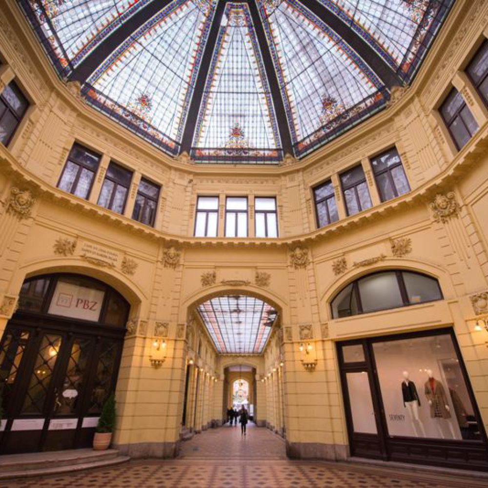The first Croatian savings bank1898 – 1900. she had the palace of the First Croatian Savings Bank built. The builder was Josip pl. Vancaš, who was also in charge of construction supervision, and the construction was carried out by the company Pilar & Mally & Bauda. The central part of this building has an octagonal shape and is surmounted by a dome, which is an example of the technical achievements of the time visible in the metal grid structure with stained glass windows. This central part is connected by two passages with the neighbouring street and square. The figural reliefs on the attics and the impressive Atlanteans at the entrance are the work of the Reinhold Völkel workshop, and their relief Croatia on the west side under the dome with many allegorical figures is also known, while the author of the stone statues is Dragutin Morak. The facility was built in a very short period of fifteen and a half months. The renovation project of the northern and southern aisles of the palace of the First Croatian Savings Bank Octagon included the protection and restoration of the facade plaster according to the existing profiles, the rehabilitation and restoration of the glass ceilings, the cleaning of the existing ones and the replacement of carpentry elements with fittings.