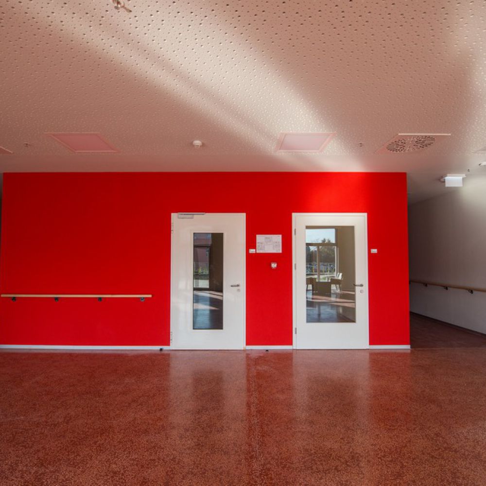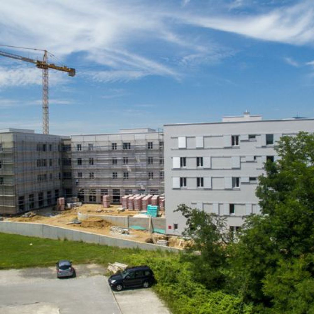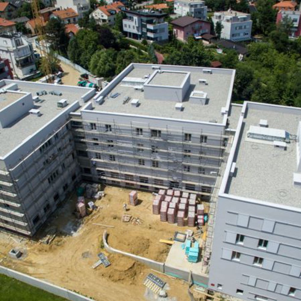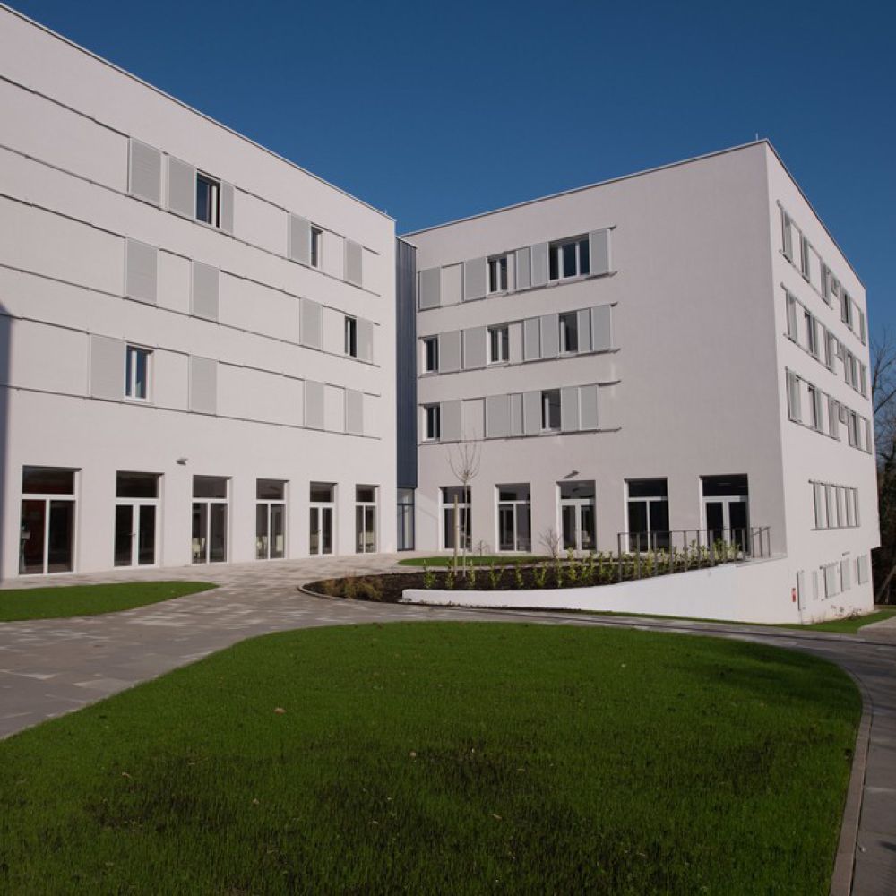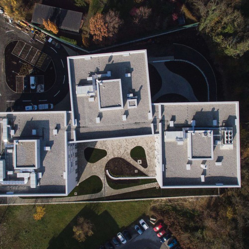 In the green oasis along Lašćinska cesta in the Maksimir neighbourhood of Zagreb, a fully equipped facility with a capacity of 200 users has been built for the accommodation of the elderly and infirm. The simple architecture of the buildings consists of three staggered squares, i.e., interconnected pavilions, which enables all social spaces to have direct contact with the environment.