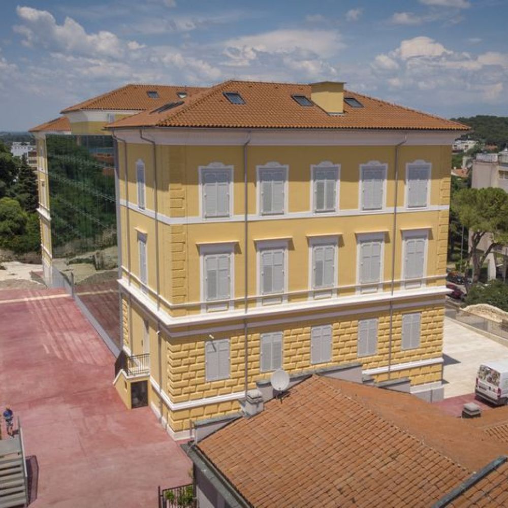 Godine 1890. izgrađena je zgrada Državne njemačke gimnazije u kojoj se danas nalazi i djeluje Arheološki muzej Istre. Građevina je izvedena kao zidana pravilnog tlocrta oblika češlja (slovo E), s etažama podruma, prizemlja, prvog i drugog kata te potkrovlja. Zidovi su kameni, izvedeni od masivnih kamenih blokova.