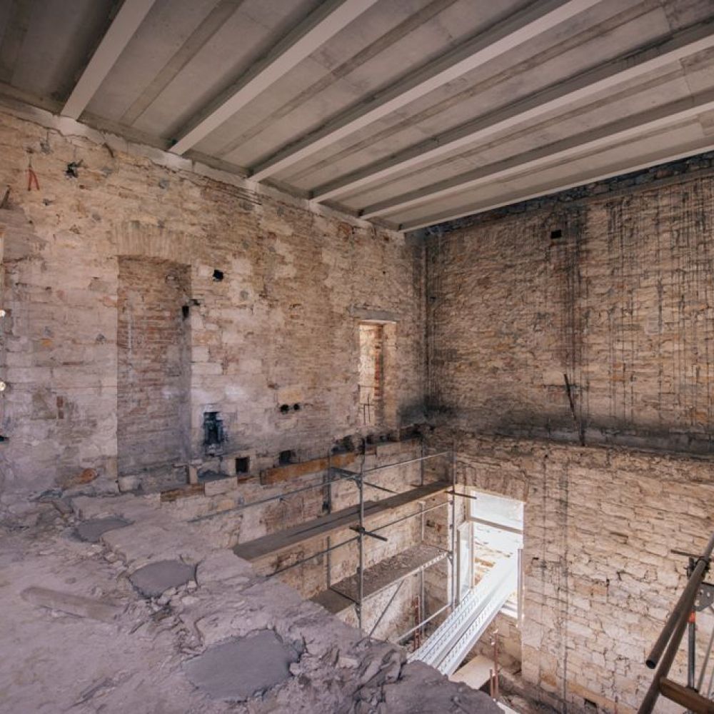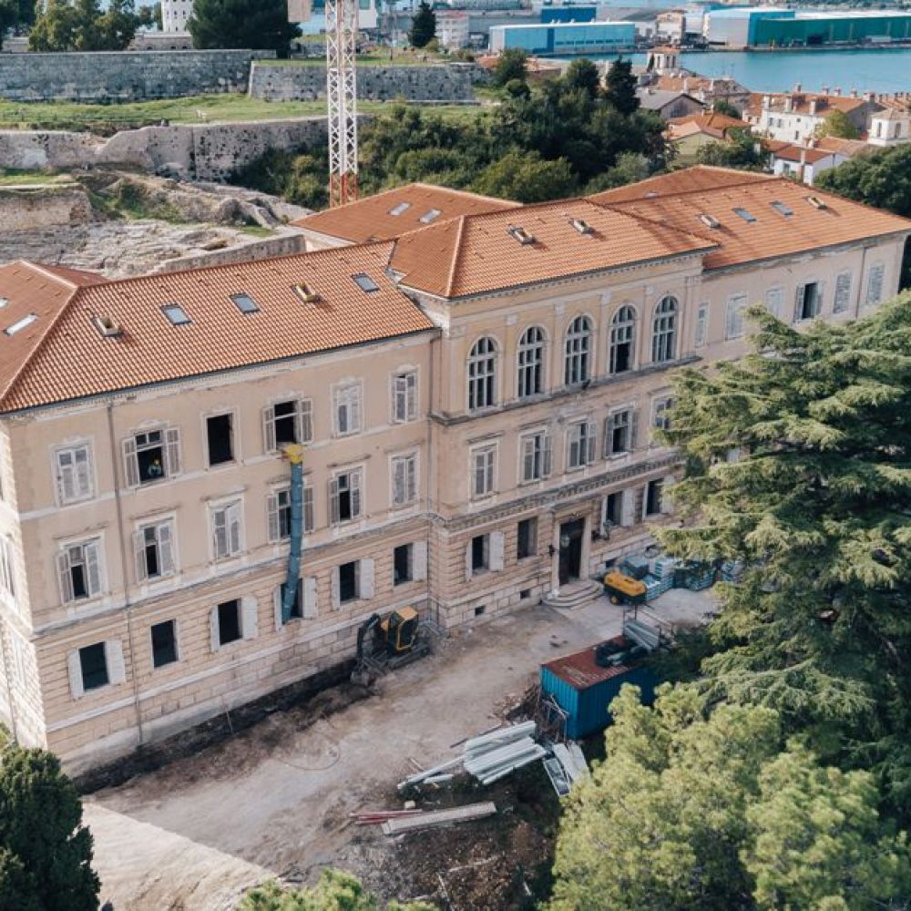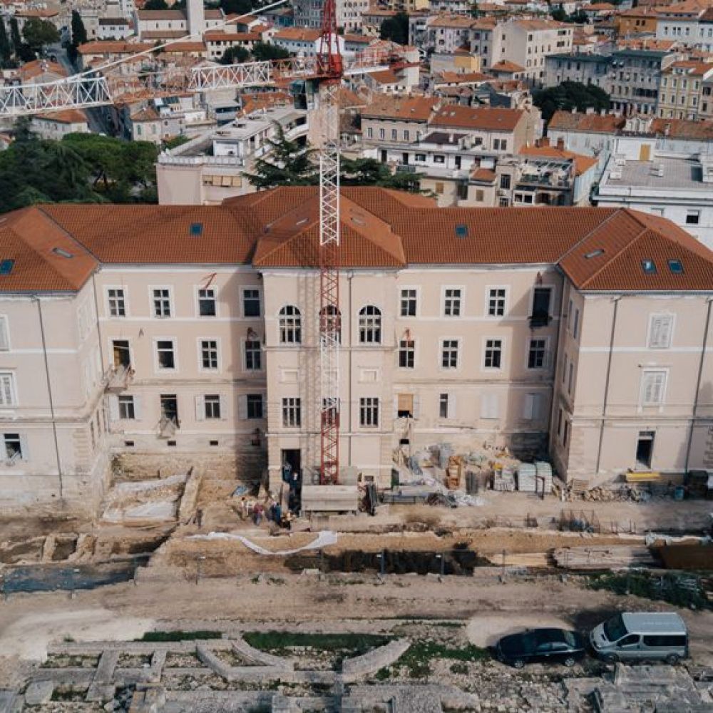 Pri adaptaciji okoliša građevine, uz stalni arheološki nadzor, pronađeno je mnogo antičkih zidova, mozaika, amfora i dva zvona iz 14. i 15. stoljeća koja su bila zatrpana sve ove godine.
