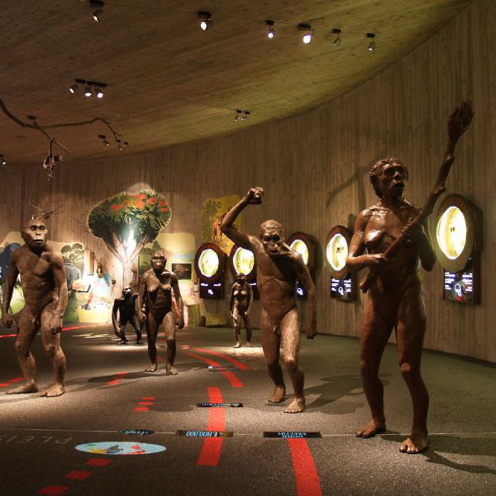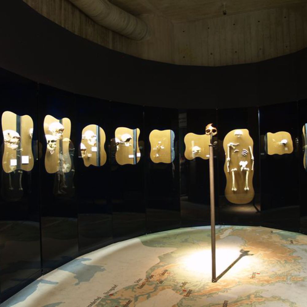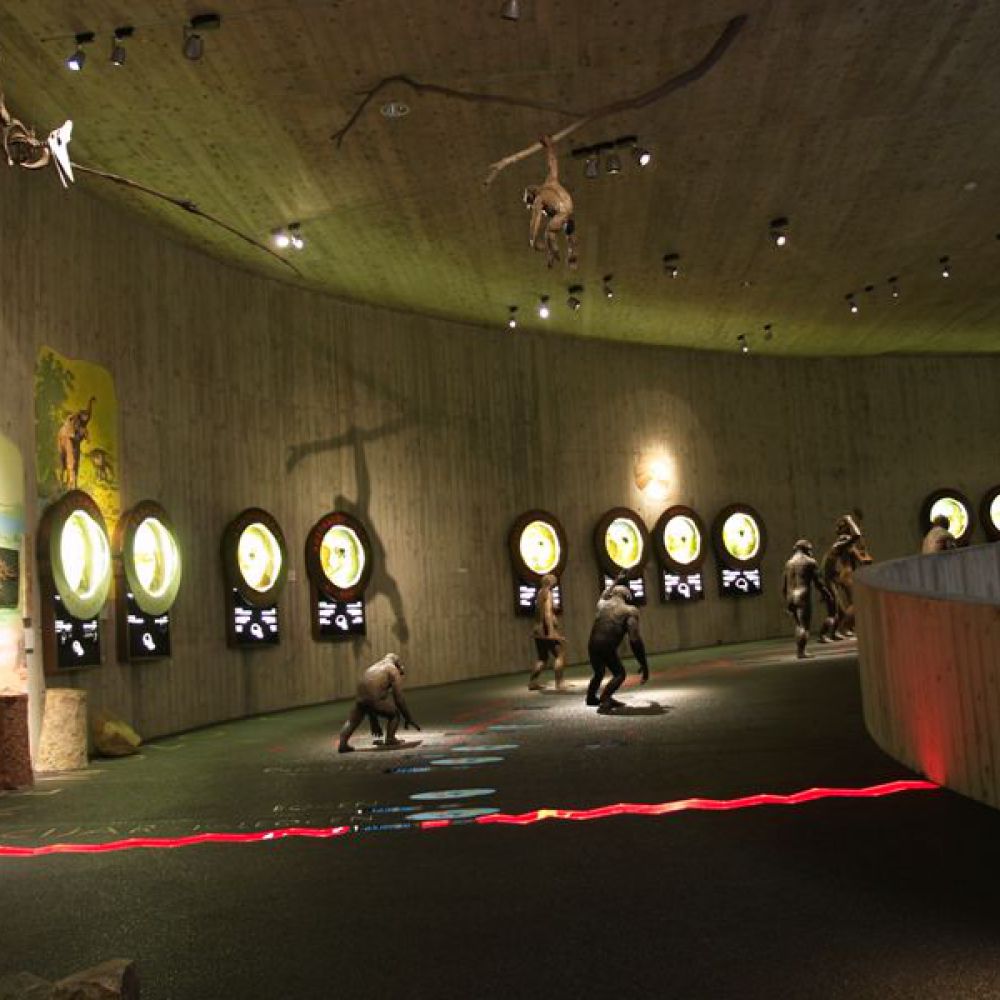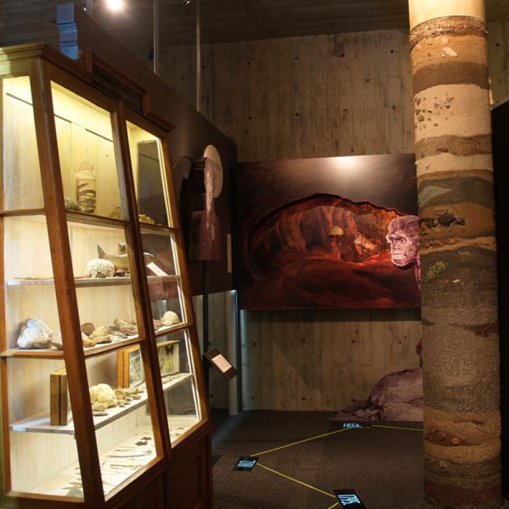 Objekt ima dvije etaže; ulazni se dio sastoji od staklenih površina na kojima se prikazuju scene iz života neandertalaca. Prizemlje i kat povezani su spiralnom rampom prekrivenom zemljom; na njoj je prikazana spirala vremena od nastanka svijeta do pojave neandertalaca. Na katu se nalazi pećina koja ponavlja oblik postojeće pećine na nalazištu. U ovoj muzejskoj pećini prikazan je život 17 obitelji neandertalaca, a lutke koje vjerno prikazuju njihov izgled rad su Elisabeth Daynes, poznate francuske kiparice čija je specijalnost hiperrealistična rekonstrukcija hominida iz sačuvanih fosila. Obogaćen mnoštvom multimedijalnih sadržaja, 3D projekcijama, glazbom, specijalnom rasvjetom, raznolikim vizualnim i zvučnim efektima te mnogim drugim tehnološkim dostignućima, ovaj je muzej jedan od najmodernijih u Europi te među sofisticiranijima i najsuvremenijima te vrste u svijetu. Gradnja muzeja započeta je 1999. na stotu obljetnicu otkrića nalazišta krapinskog pračovjeka, a 28. veljače 2010. muzej je svečano otvoren. Autor je projekta arhitekt Željko Kovačić, a autor cjelokupnog koncepta muzejski savjetnik Hrvatskoga prirodoslovnog muzeja Jakov Radovčić.