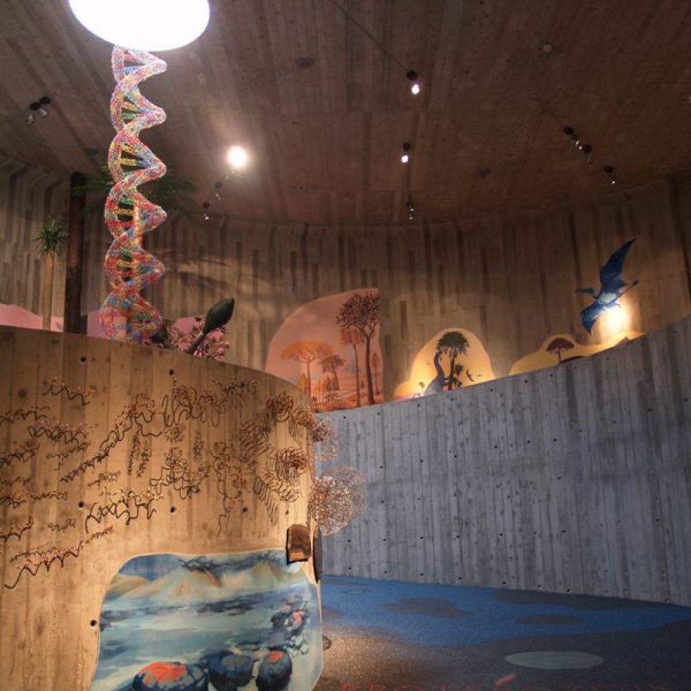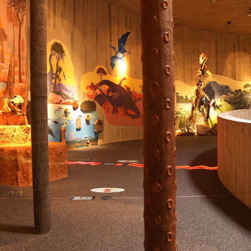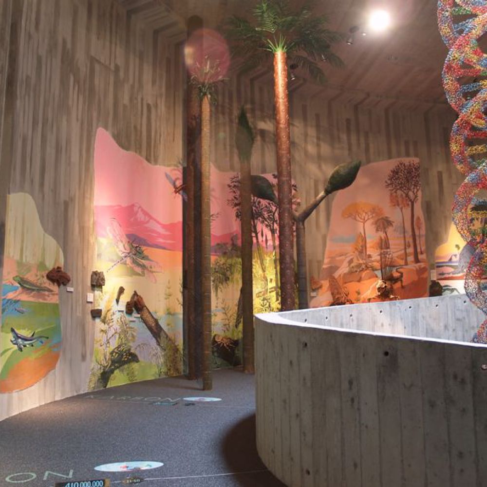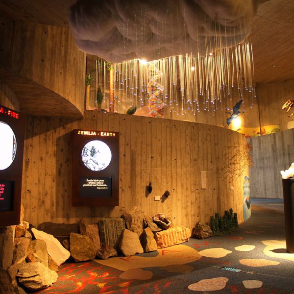 Objekt ima dvije etaže; ulazni se dio sastoji od staklenih površina na kojima se prikazuju scene iz života neandertalaca. Prizemlje i kat povezani su spiralnom rampom prekrivenom zemljom; na njoj je prikazana spirala vremena od nastanka svijeta do pojave neandertalaca. Na katu se nalazi pećina koja ponavlja oblik postojeće pećine na nalazištu. U ovoj muzejskoj pećini prikazan je život 17 obitelji neandertalaca, a lutke koje vjerno prikazuju njihov izgled rad su Elisabeth Daynes, poznate francuske kiparice čija je specijalnost hiperrealistična rekonstrukcija hominida iz sačuvanih fosila. Obogaćen mnoštvom multimedijalnih sadržaja, 3D projekcijama, glazbom, specijalnom rasvjetom, raznolikim vizualnim i zvučnim efektima te mnogim drugim tehnološkim dostignućima, ovaj je muzej jedan od najmodernijih u Europi te među sofisticiranijima i najsuvremenijima te vrste u svijetu. Gradnja muzeja započeta je 1999. na stotu obljetnicu otkrića nalazišta krapinskog pračovjeka, a 28. veljače 2010. muzej je svečano otvoren. Autor je projekta arhitekt Željko Kovačić, a autor cjelokupnog koncepta muzejski savjetnik Hrvatskoga prirodoslovnog muzeja Jakov Radovčić.